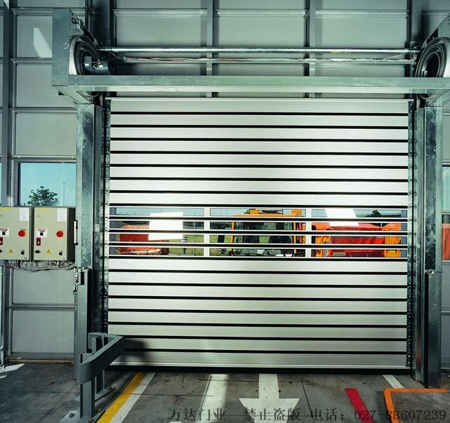 硬质定安快速门具有可靠性、实用性、耐久性、易操作性以及低 廉的维修费用和 低噪 音等性能。在工业应用中,每年正常无故障动作可达15万次以上。门板条为双层结构,可以抵抗强风和暴风雨及大雪的侵袭。根据需要,还可以将隔热铝制板条和透明的板条组合安装起来。板条在卷起时相互无接触,这样可以保持板条常年无变形、无磨损。另外板条之间也没有直接连接, 它们的两端是和可以卷绕的钢带螺接在一起,各板条之间用密封胶条连接,这样既可以节省空间,又可以保证门帘不变形,而且板条的更换也非常简单、快捷。